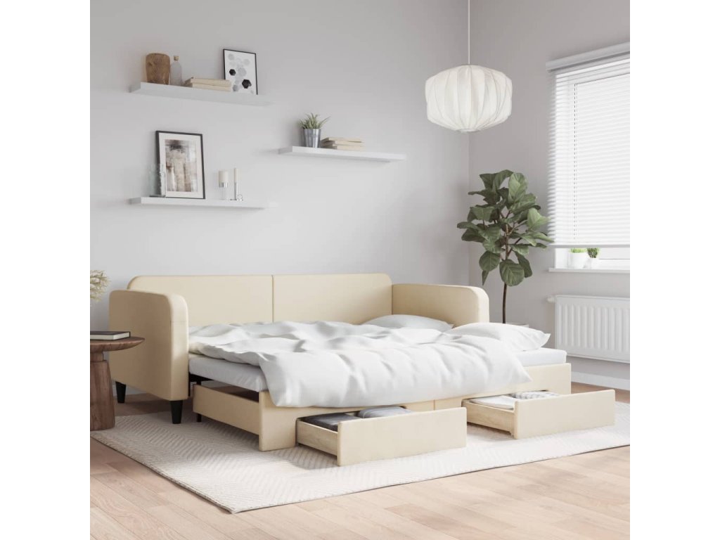 Válenda s přistýlkou a zásuvkami krémová 90 x 200 cm textil 3196856