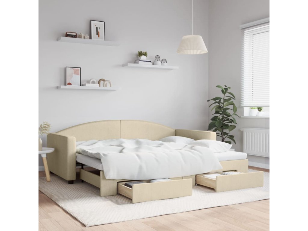 Válenda s přistýlkou a zásuvkami krémová 90 x 200 cm textil 3197228