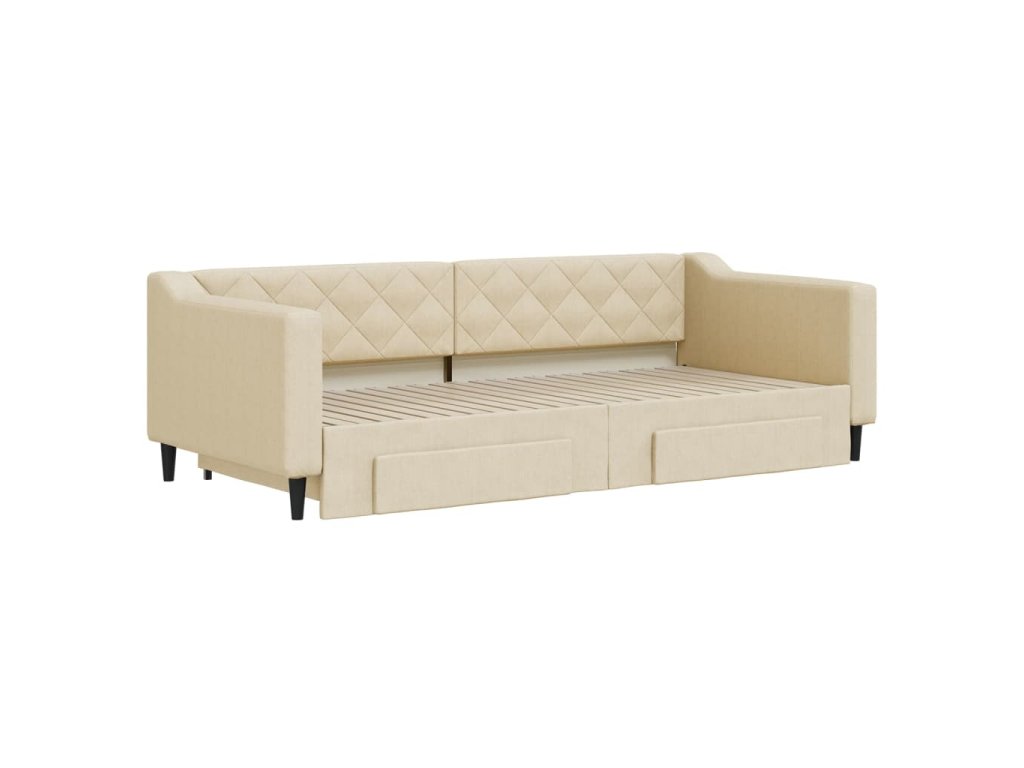 Válenda s přistýlkou a zásuvkami krémová 90 x 200 cm textil 3197466