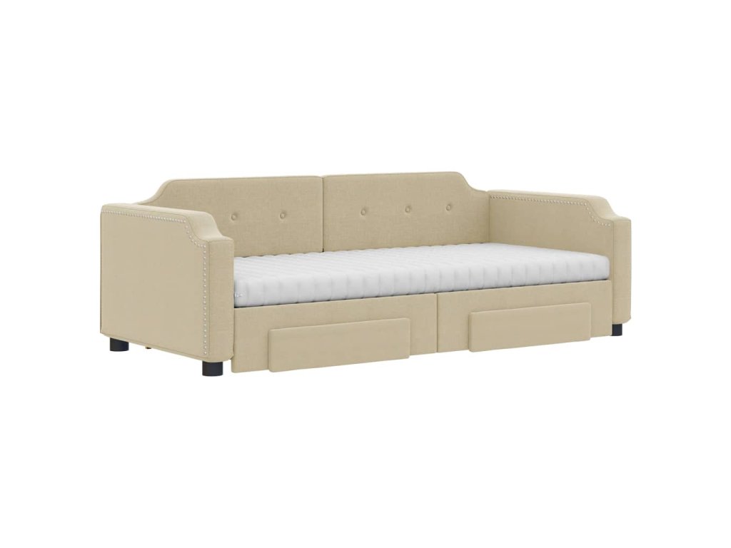 Válenda s přistýlkou a zásuvkami krémová 90 x 200 cm textil 3197692