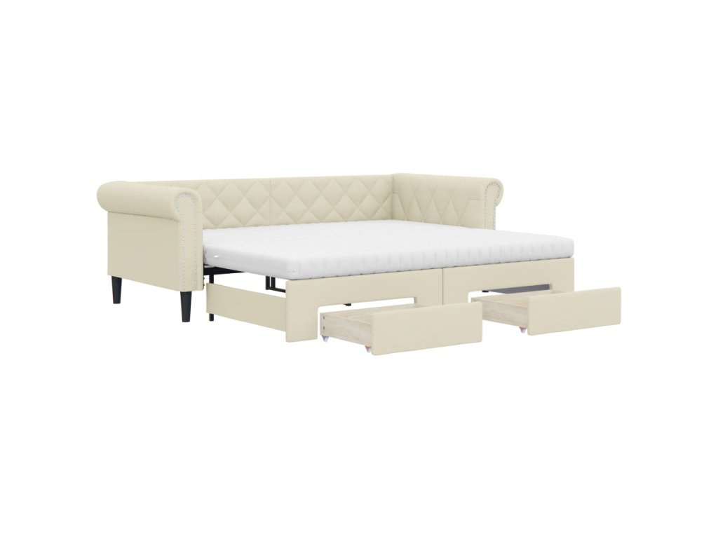 Válenda s přistýlkou a zásuvkami krémová 90 x 200 cm umělá kůže 3197737