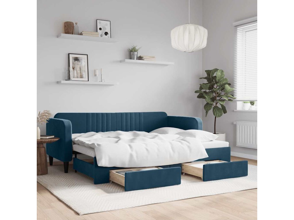 Válenda s přistýlkou a zásuvkami modrá 80 x 200 cm samet 3197103