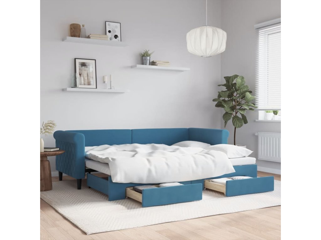 Válenda s přistýlkou a zásuvkami modrá 80 x 200 cm samet 3197811