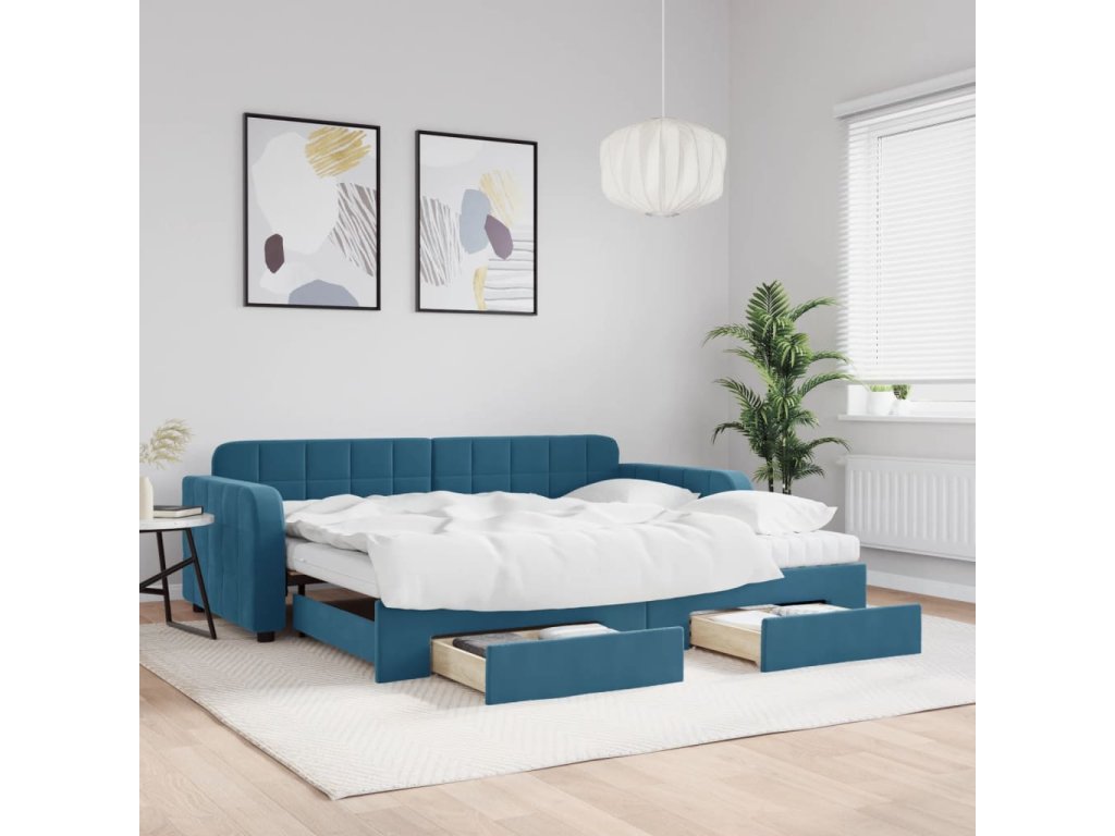 Válenda s přistýlkou a zásuvkami modrá 90 x 200 cm samet 3197000