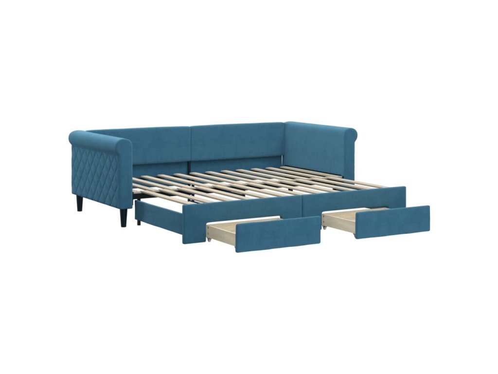 Válenda s přistýlkou a zásuvkami modrá 90 x 200 cm samet 3197818