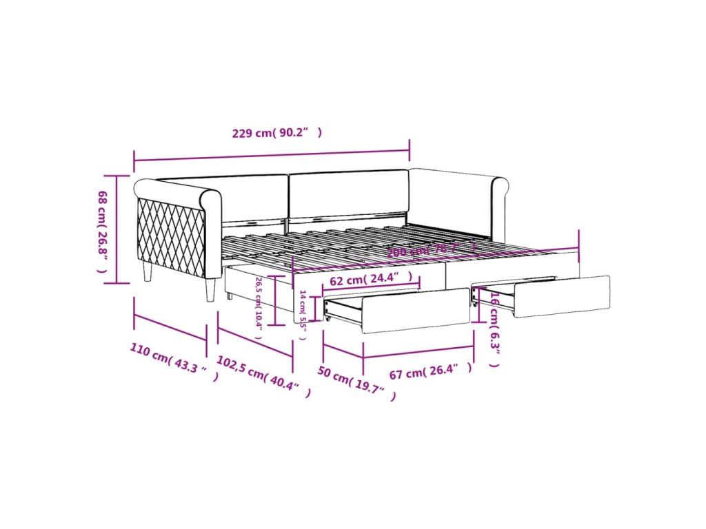- Rozměry (nevysunuté): 229 x 110 x 68 cm (D x Š x V)