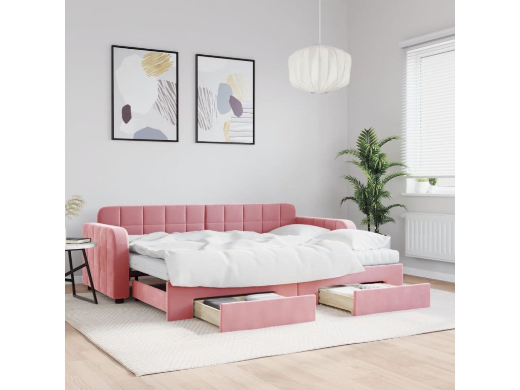 Válenda s přistýlkou a zásuvkami růžová 80 x 200 cm samet 3196997