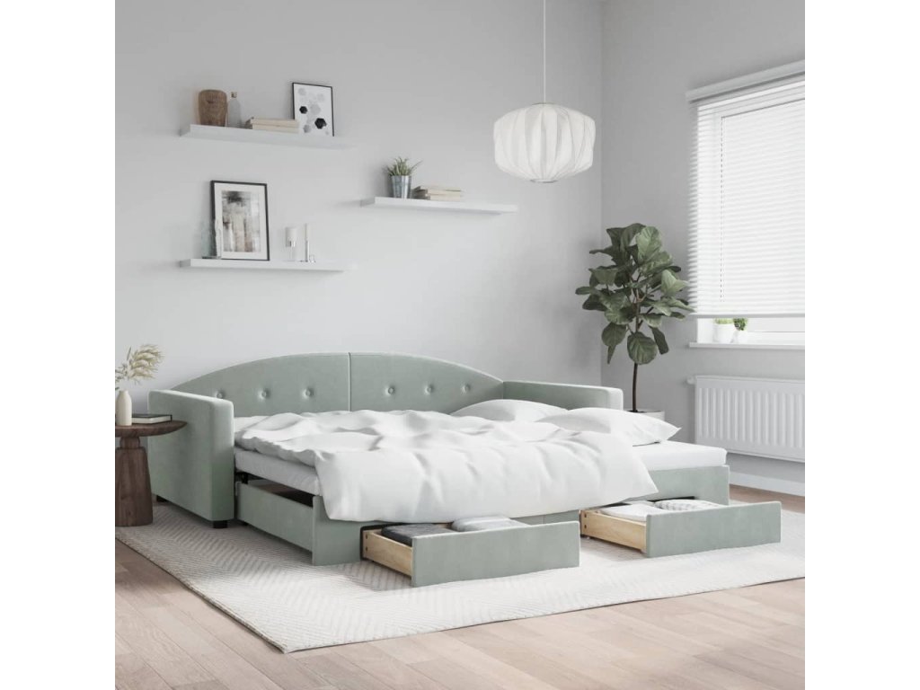 Válenda s přistýlkou a zásuvkami světle šedá 100 x 200 cm samet 3197356