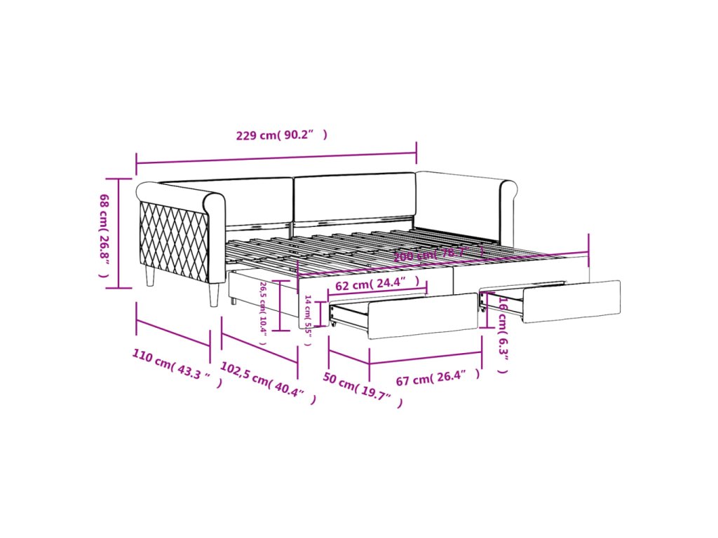 - Rozměry (nevysunuté): 229 x 110 x 68 cm (D x Š x V)