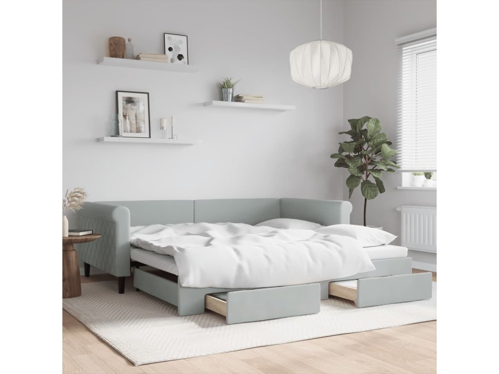 Válenda s přistýlkou a zásuvkami světle šedá 100 x 200 cm samet 3197826