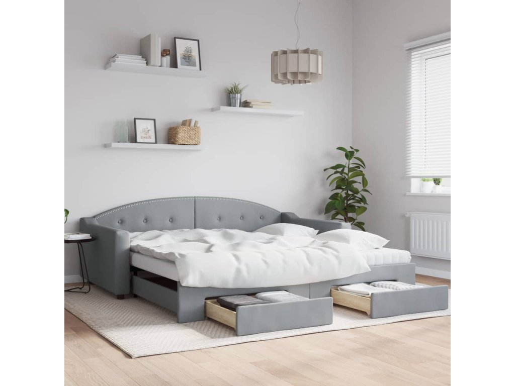 Válenda s přistýlkou a zásuvkami světle šedá 100x200 cm textil 3197571