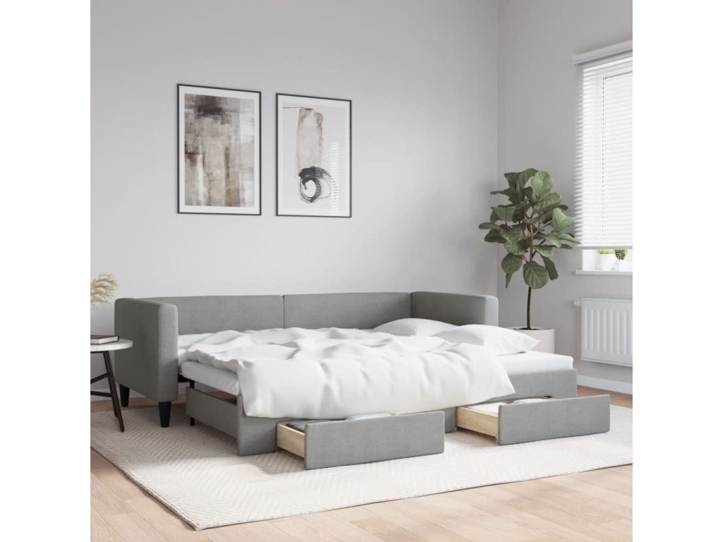 Válenda s přistýlkou a zásuvkami světle šedá 80 x 200 cm textil 3196609