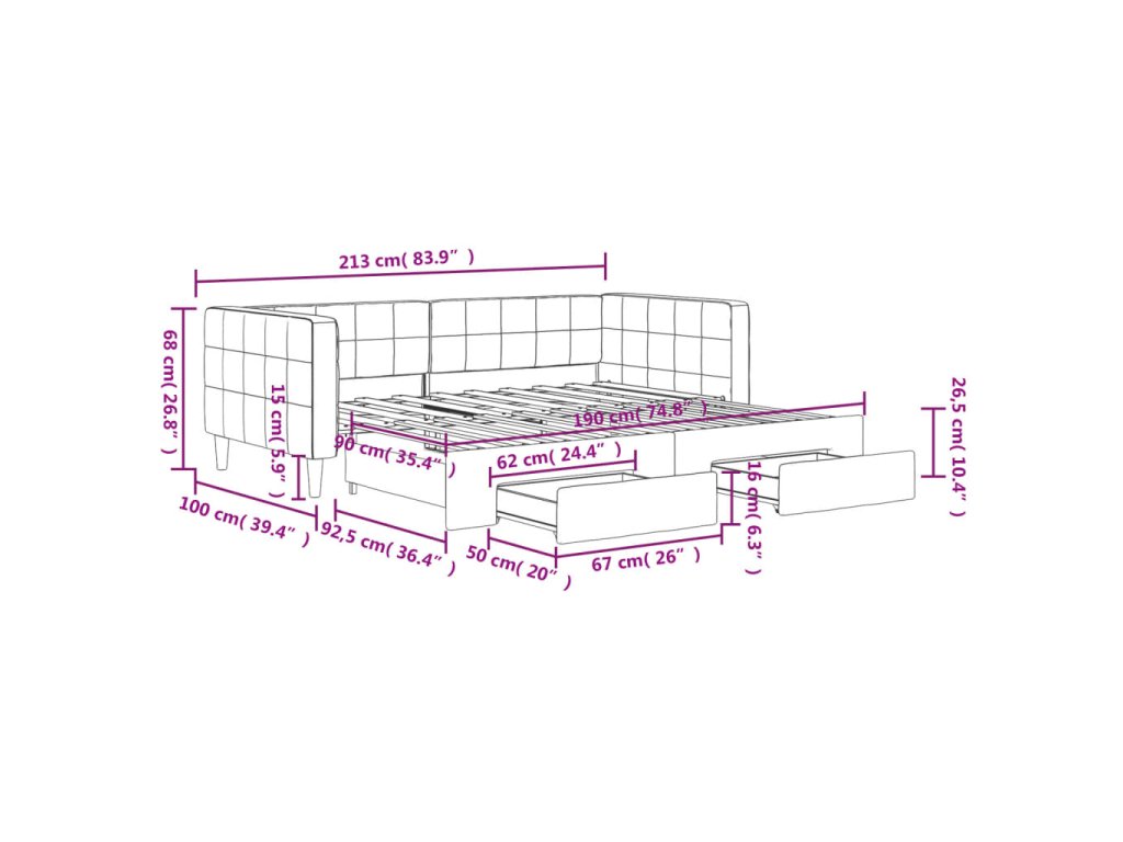- Všestranná válenda: Rozkládací pohovku lze během dne používat jako pohovku a v noci ji přeměníte na dvoulůžko pomocí přistýlky, kterou snadno vysunete, takže představuje pohodlné řešení pro uložení vašich hostů a zároveň maximálně využívá prostor.