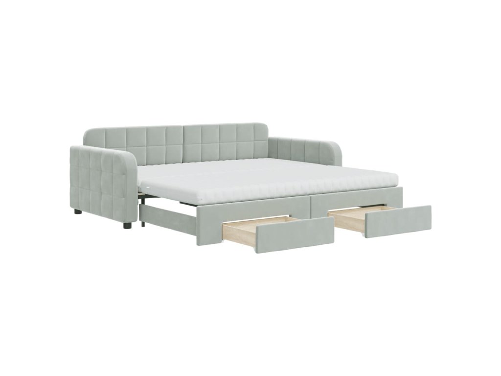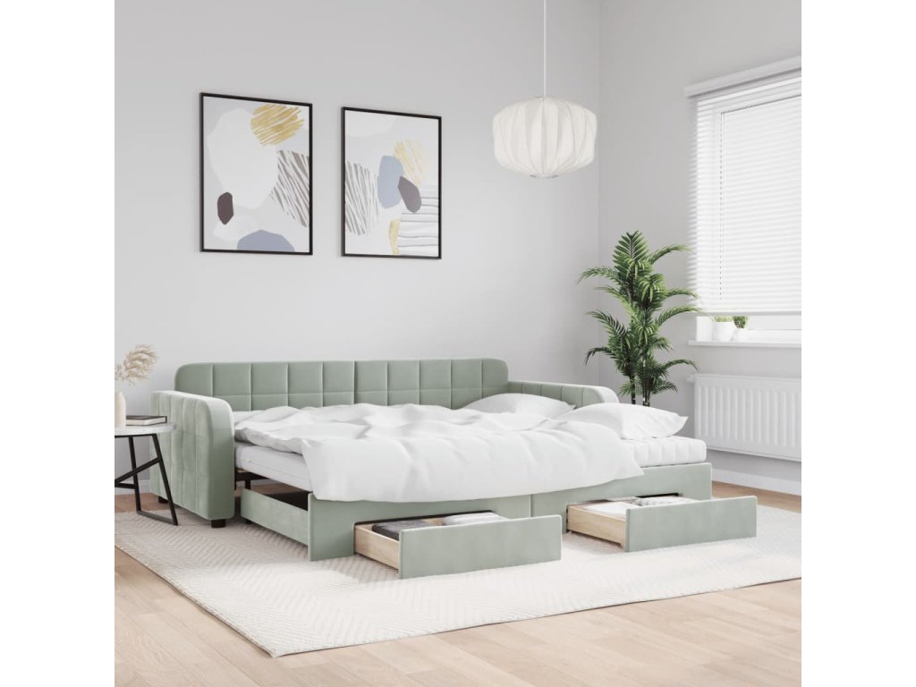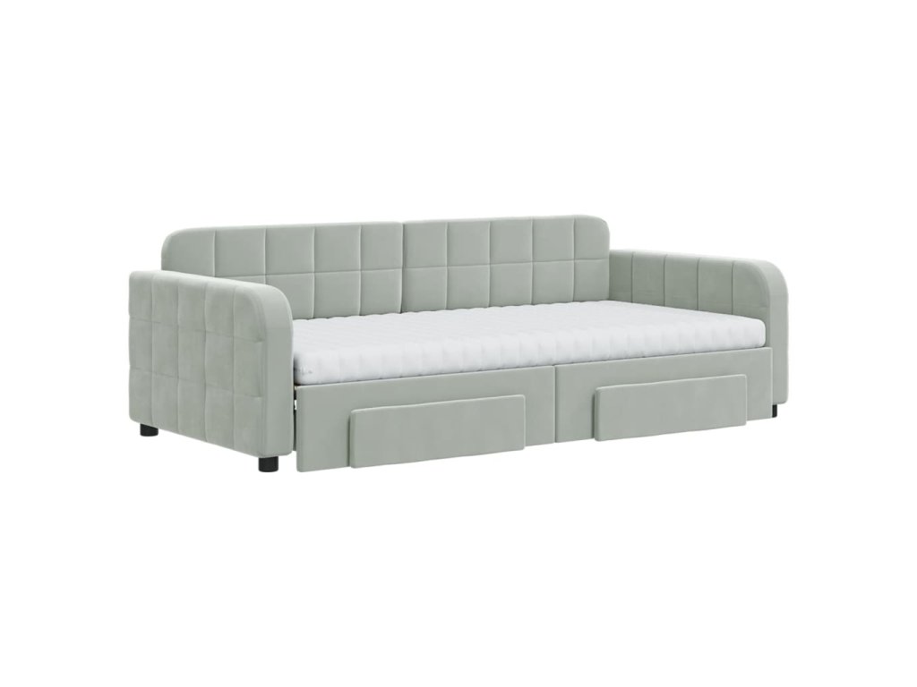 Válenda s přistýlkou a zásuvkami světle šedá 90 x 190 cm samet 3197014