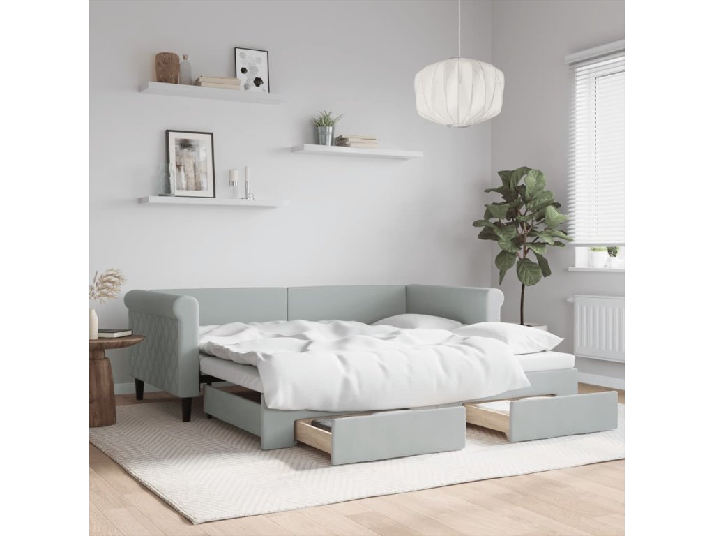 Válenda s přistýlkou a zásuvkami světle šedá 90 x 190 cm samet 3197832