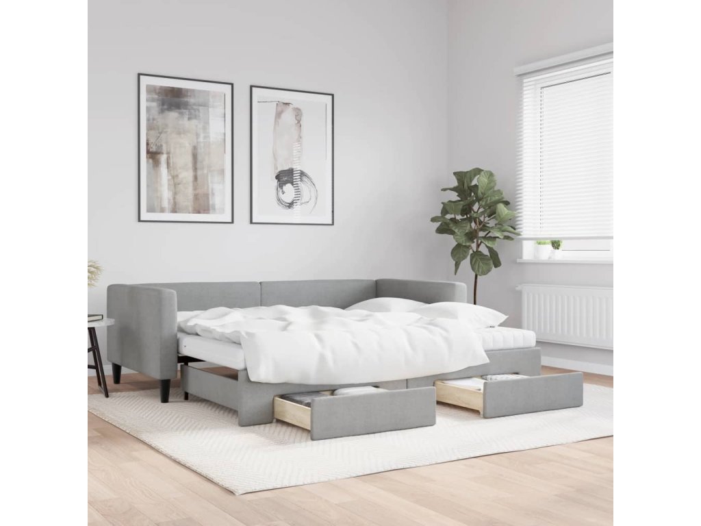 Válenda s přistýlkou a zásuvkami světle šedá 90 x 190 cm textil 3196642