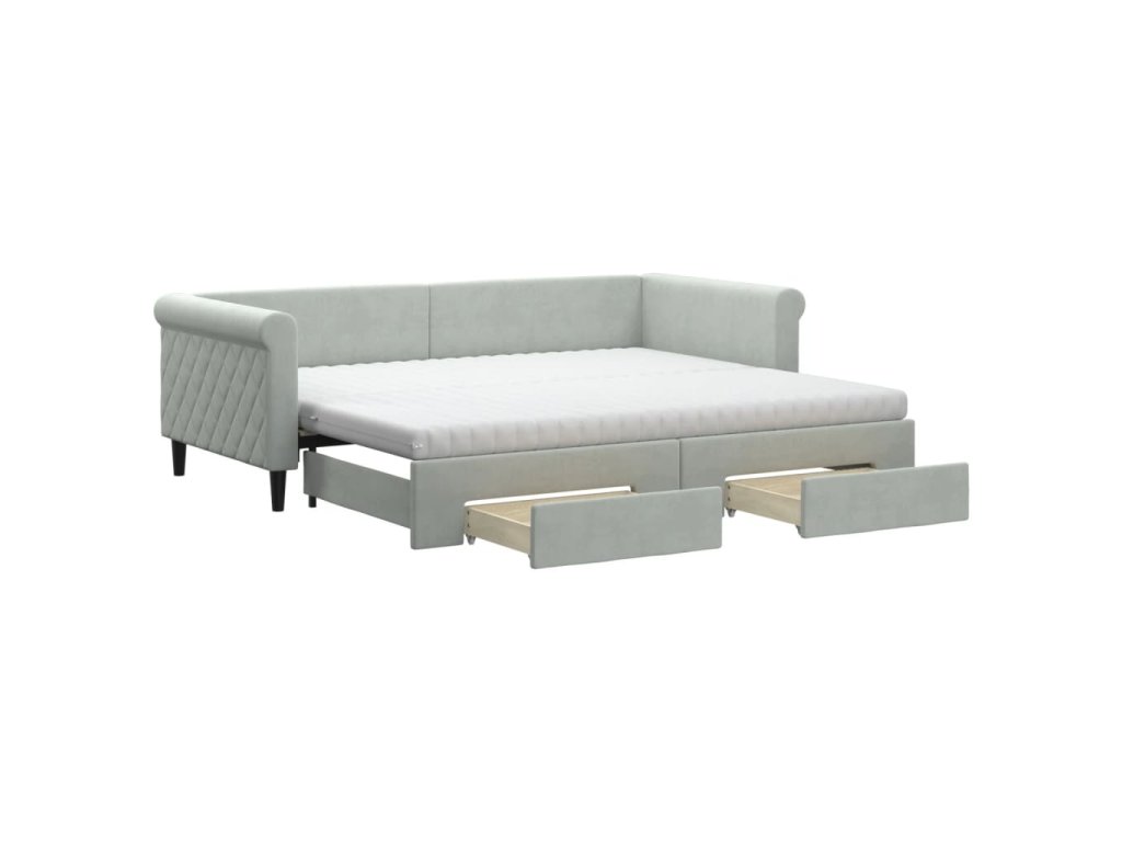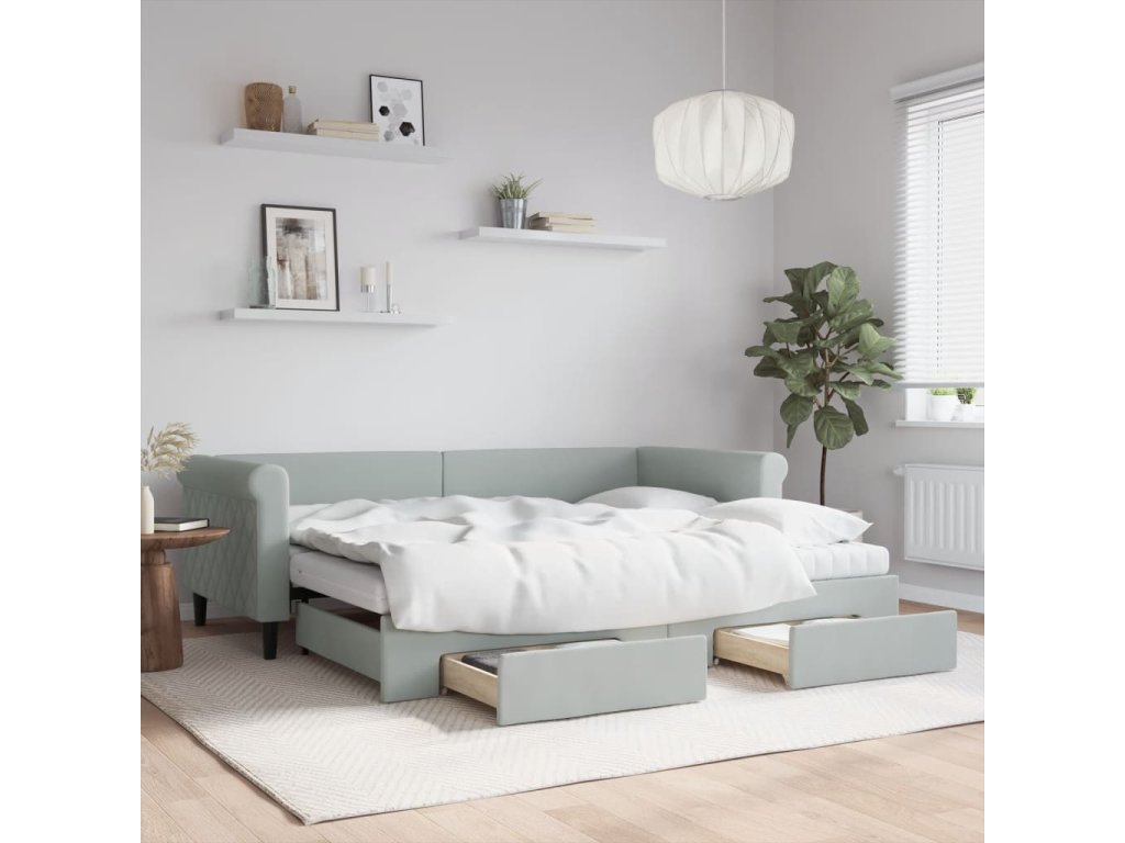 Válenda s přistýlkou a zásuvkami světle šedá 90 x 200 cm samet 3197843