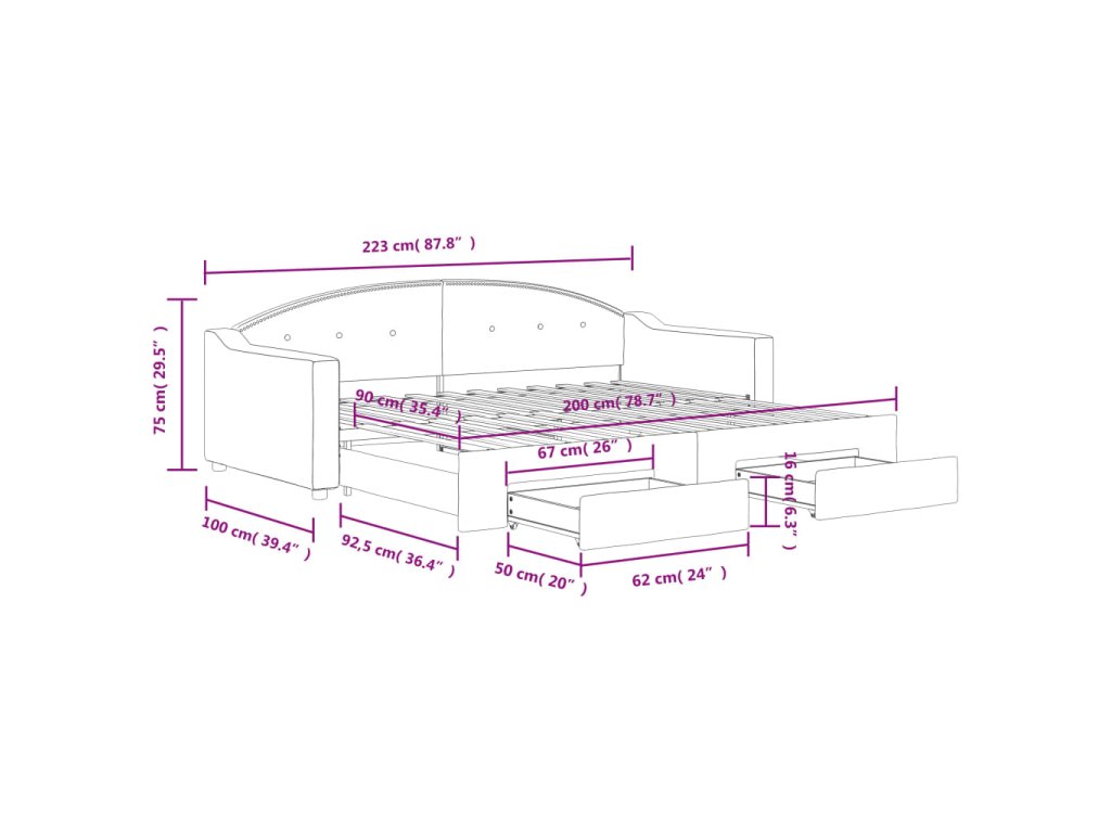 - Rozměry (nevysunuté): 223 x 100 x 75 cm (D x Š x V)