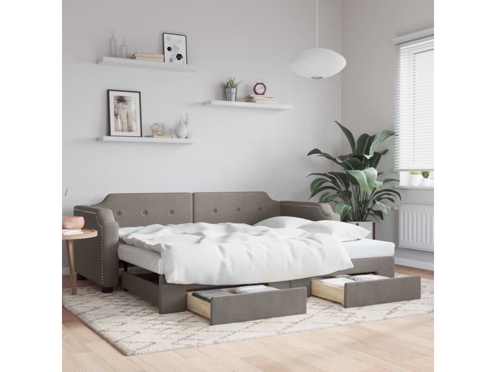 Válenda s přistýlkou a zásuvkami taupe 90 x 200 cm textil 3197673
