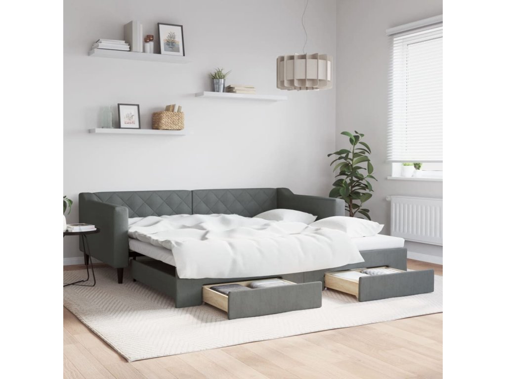 Válenda s přistýlkou a zásuvkami tmavě šedá 100 x 200 cm textil 3197468