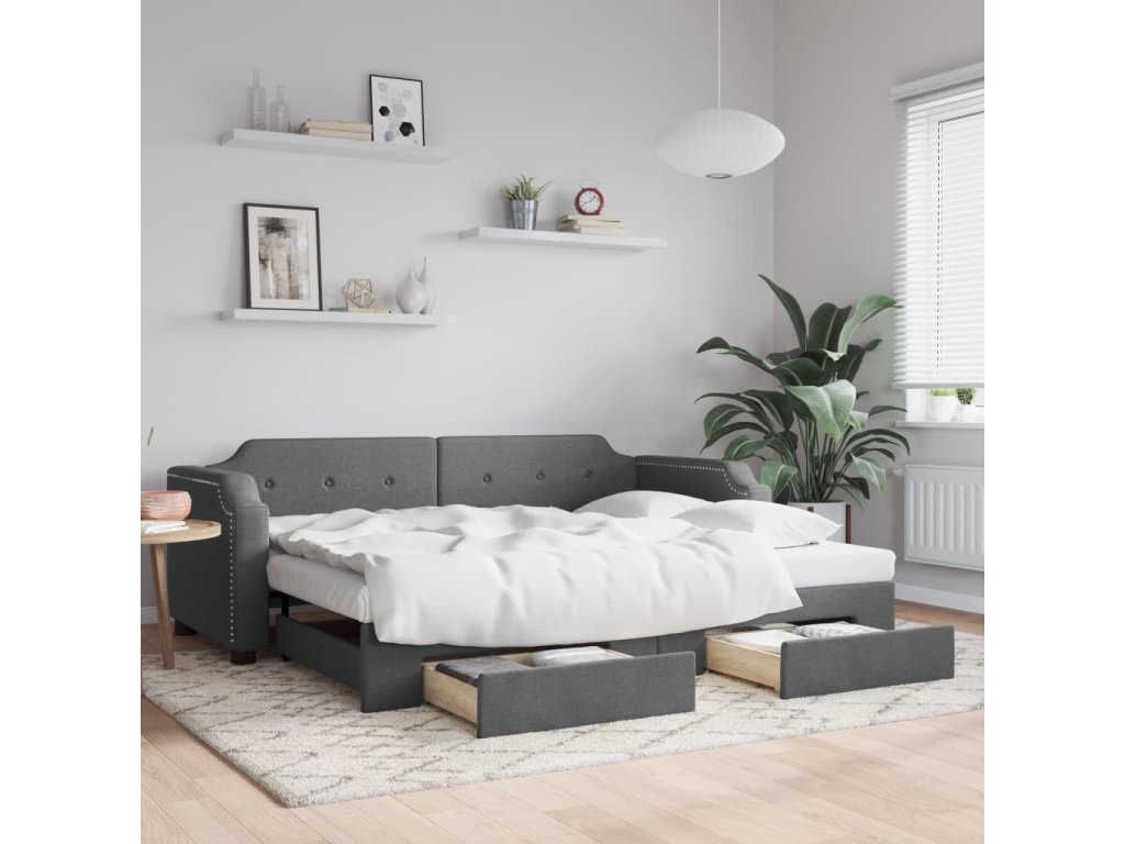 Válenda s přistýlkou a zásuvkami tmavě šedá 100 x 200 cm textil 3197676