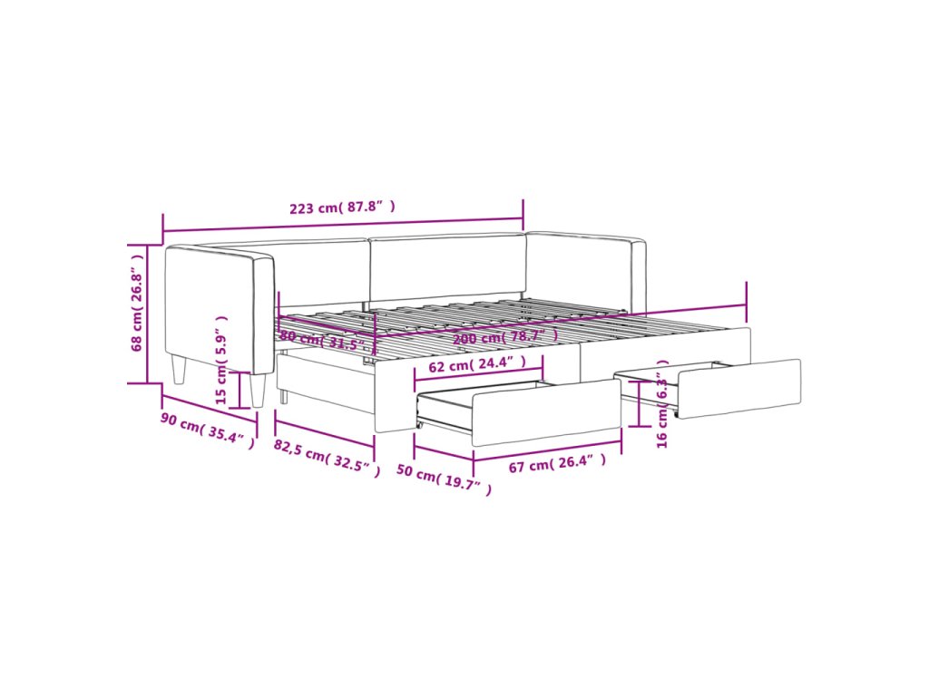 Válenda s přistýlkou a zásuvkami tmavě šedá 80 x 200 cm textil 3196610