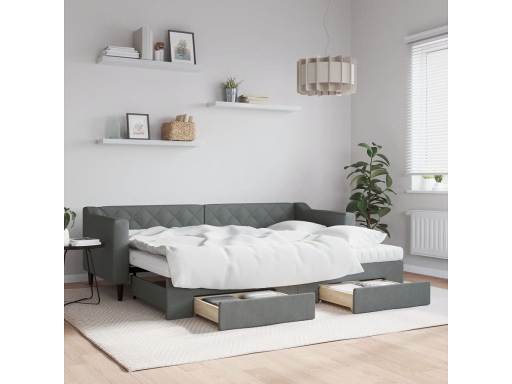 Válenda s přistýlkou a zásuvkami tmavě šedá 80 x 200 cm textil 3197476