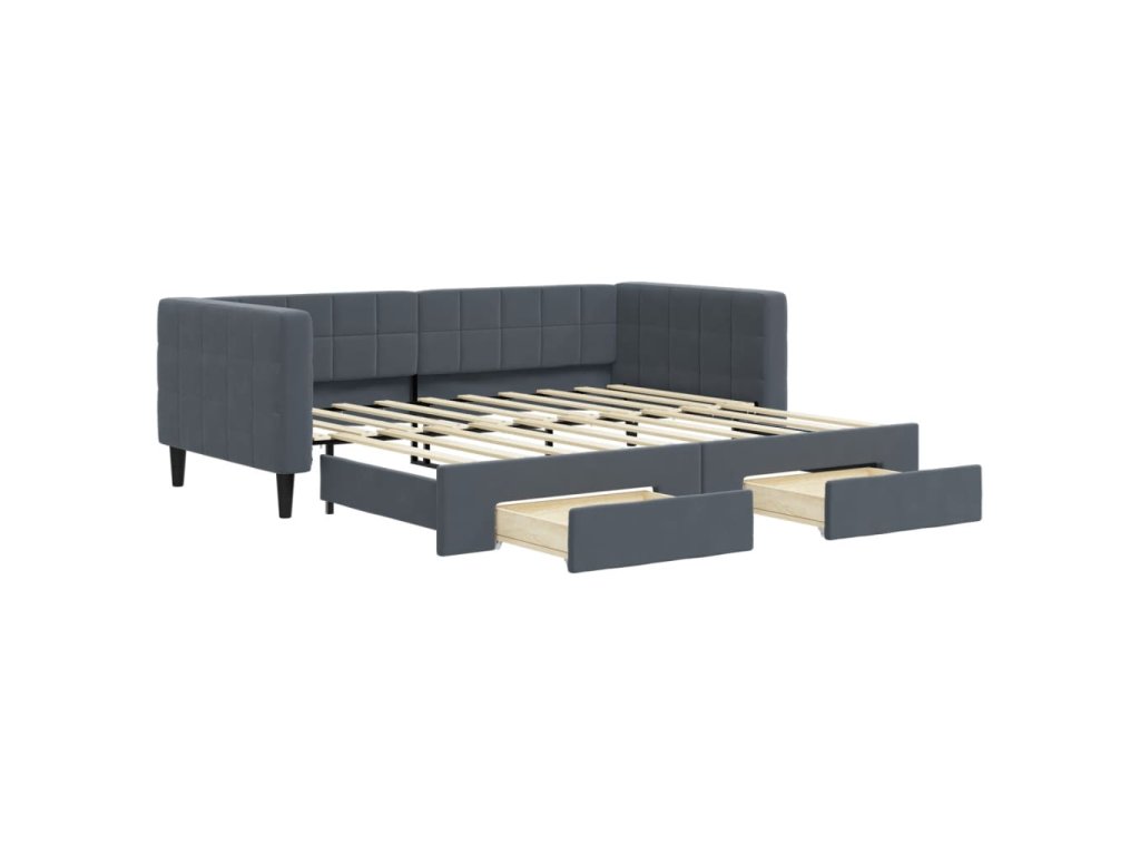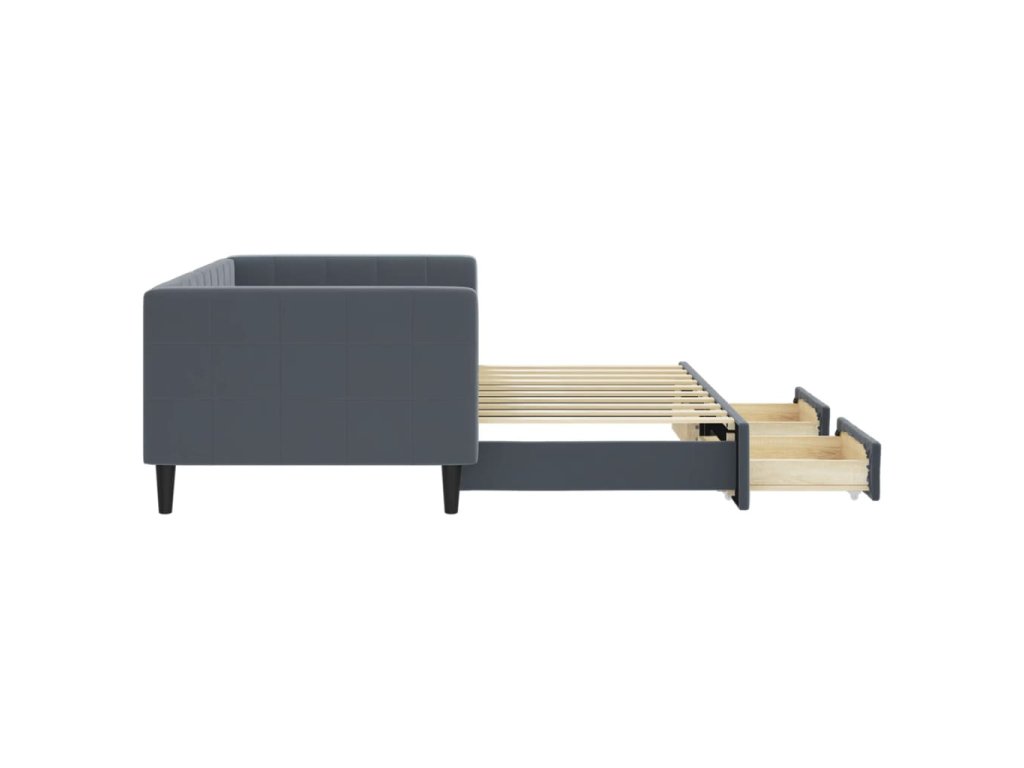 Válenda s přistýlkou a zásuvkami tmavě šedá 90 x 190 cm samet 3196753