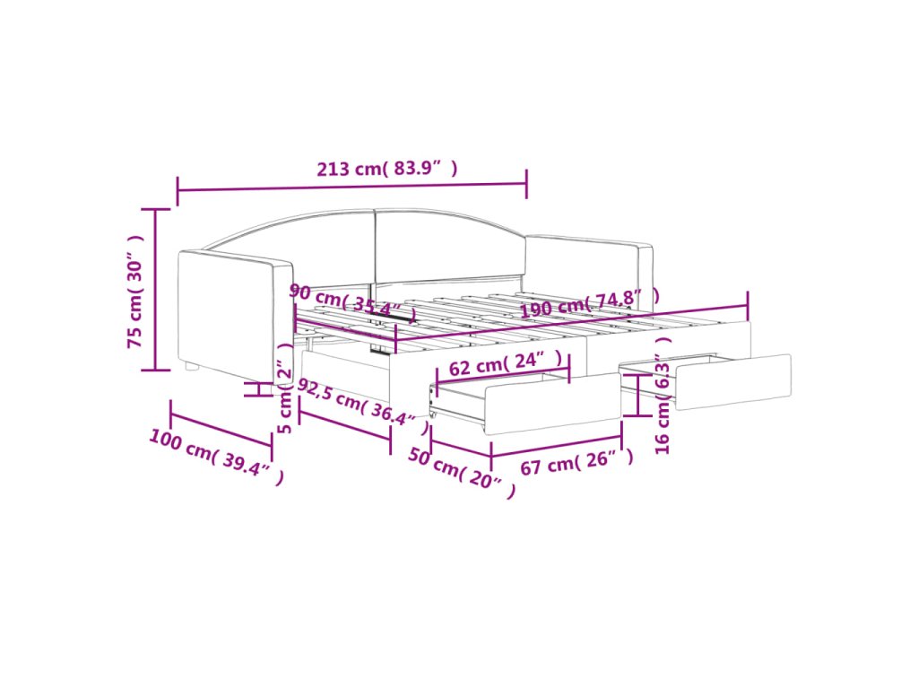 - Rozměry (nevysunuté): 213 x 100 x 75 cm (Š x H x V)