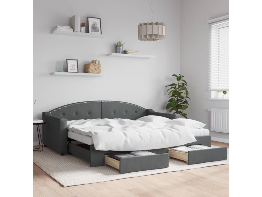 Válenda s přistýlkou a zásuvkami tmavě šedá 90 x 190 cm textil 3197577