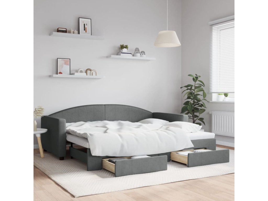 Válenda s přistýlkou a zásuvkami tmavě šedá 90 x 200 cm textil 3197225