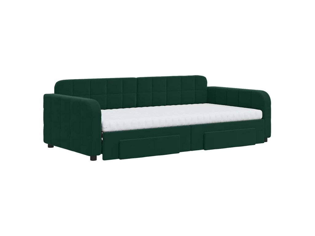 Válenda s přistýlkou a zásuvkami tmavě zelená 100x200 cm samet 3197010