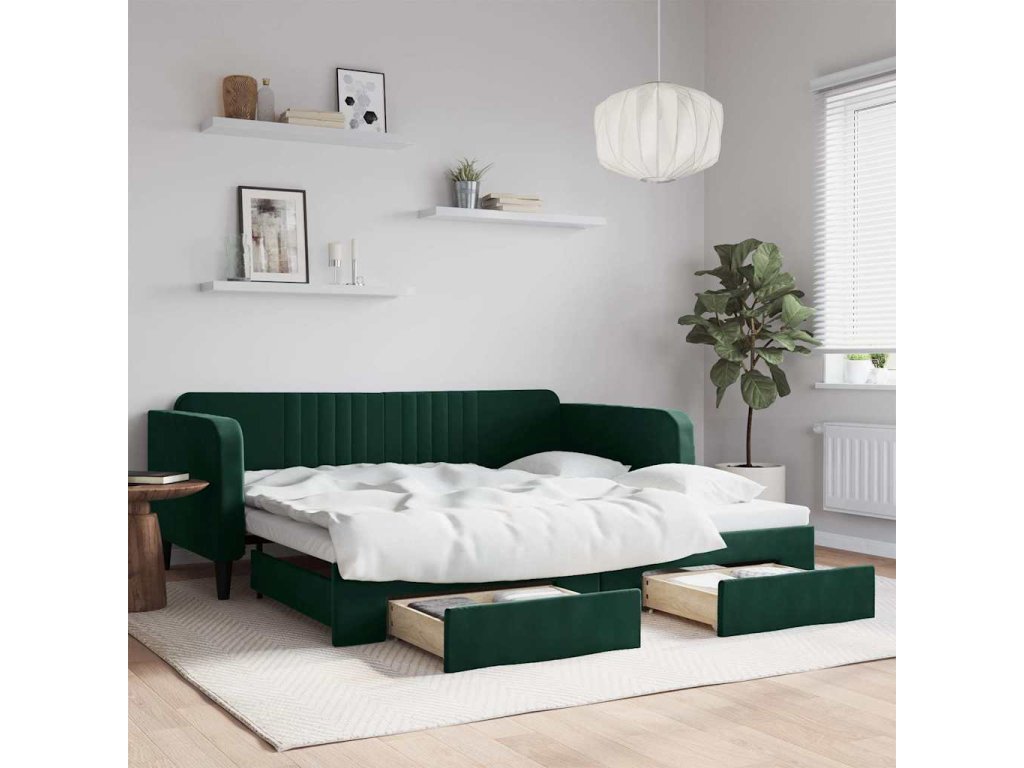 Válenda s přistýlkou a zásuvkami tmavě zelená 100x200 cm samet 3197120