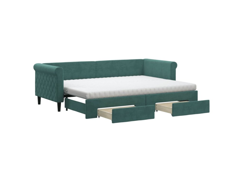 Válenda s přistýlkou a zásuvkami tmavě zelená 80 x 200 cm samet 3197838