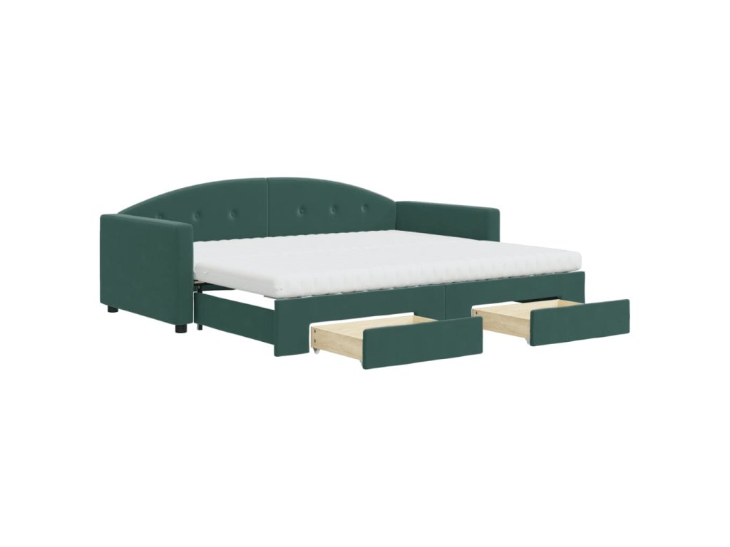 Válenda s přistýlkou a zásuvkami tmavě zelená 90 x 200 cm samet 3197375