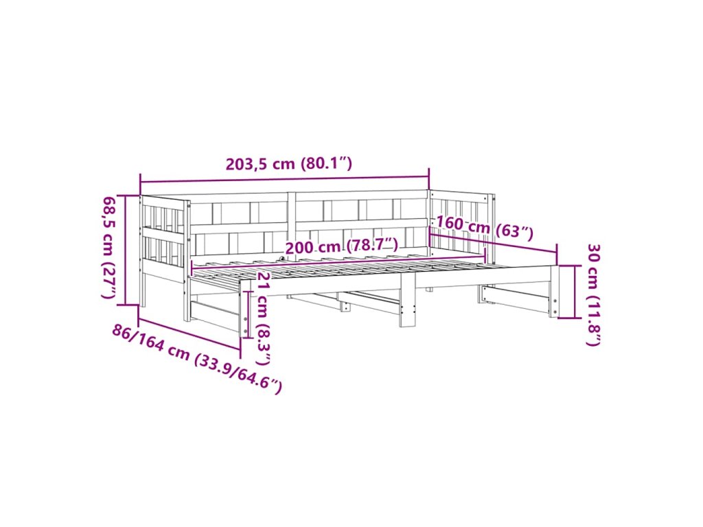 - Rozměry (nevysunuté): 203,5 x 86 x 68,5 cm (D x Š x V)