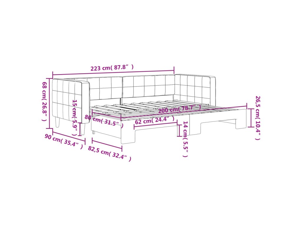 - Všestranná válenda: Rozkládací pohovku lze během dne používat jako pohovku a v noci ji přeměníte na dvoulůžko pomocí přistýlky, kterou snadno vysunete, takže představuje pohodlné řešení pro uložení vašich hostů a zároveň maximálně využívá prostor.