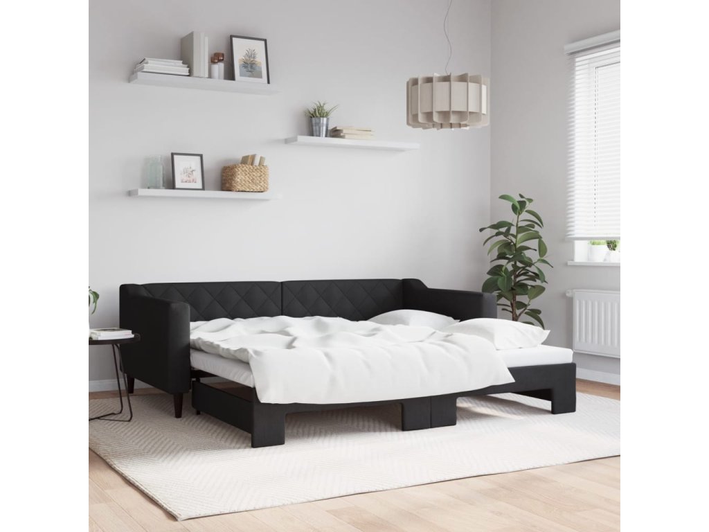 Válenda s přistýlkou černá 90 x 190 cm textil 3197438