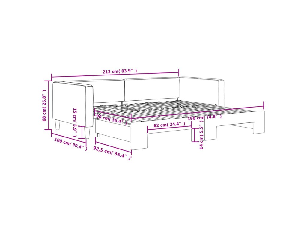 - Rozměry (nevysunuté): 213 x 100 x 68 cm (D x Š x V)