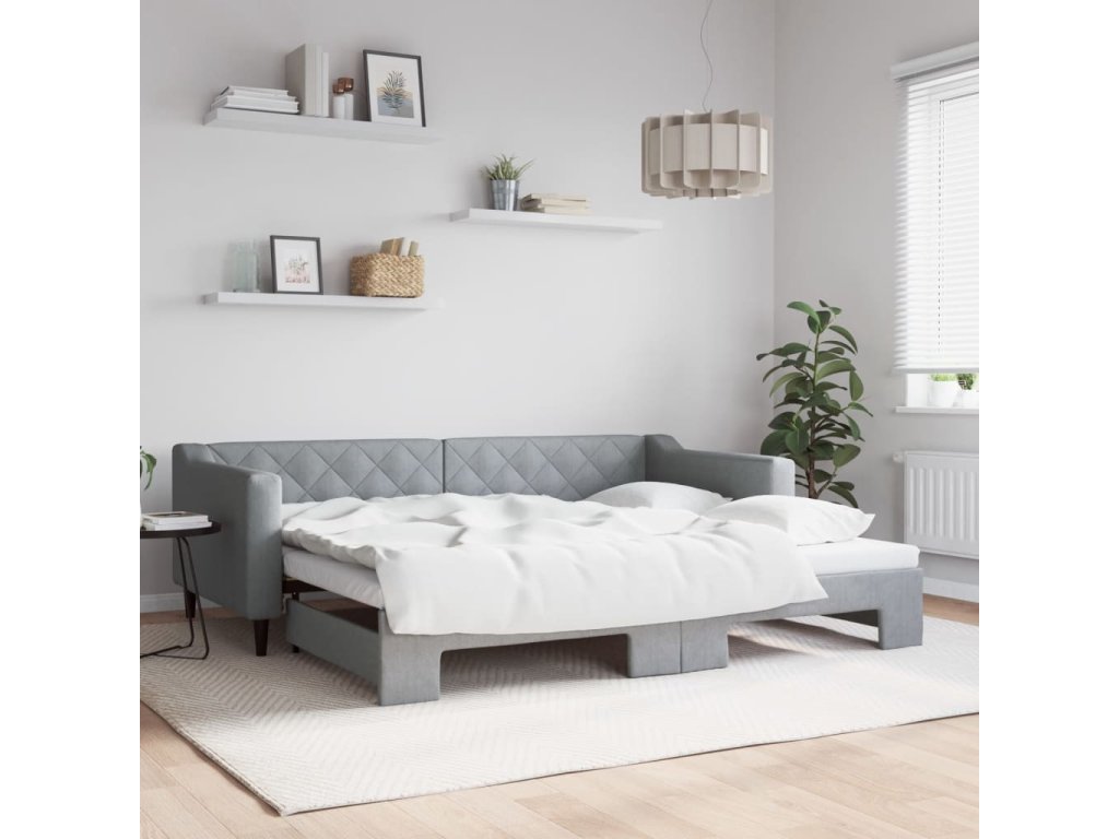 Válenda s přistýlkou světle šedá 90 x 200 cm textil 3197426