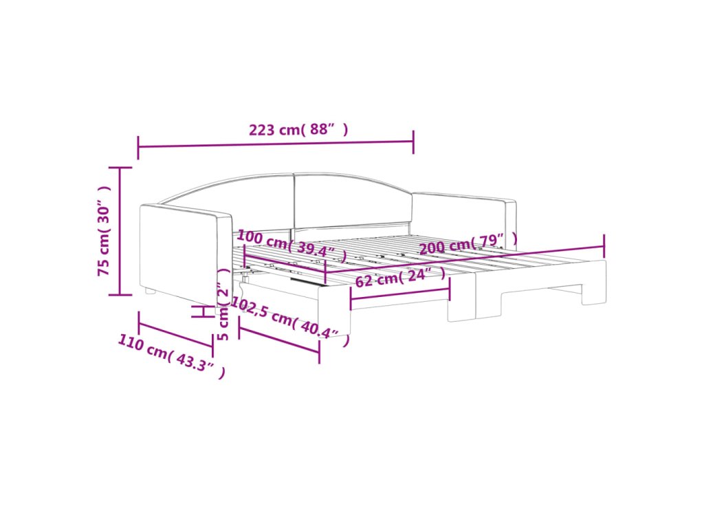 - Rozměry (nevysunuté): 223 x 110 x 75 cm (Š x H x V)