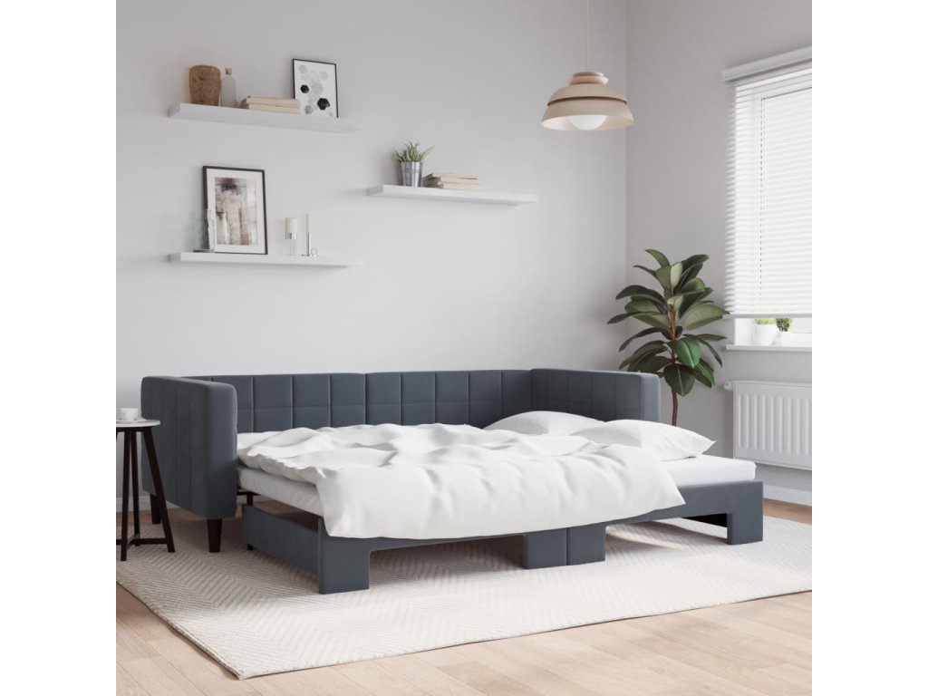 Válenda s přistýlkou tmavě šedá 90 x 190 cm samet 3196705
