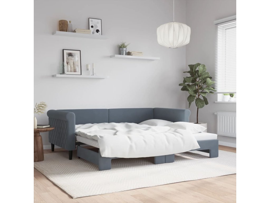 Válenda s přistýlkou tmavě šedá 90 x 190 cm samet 3197785