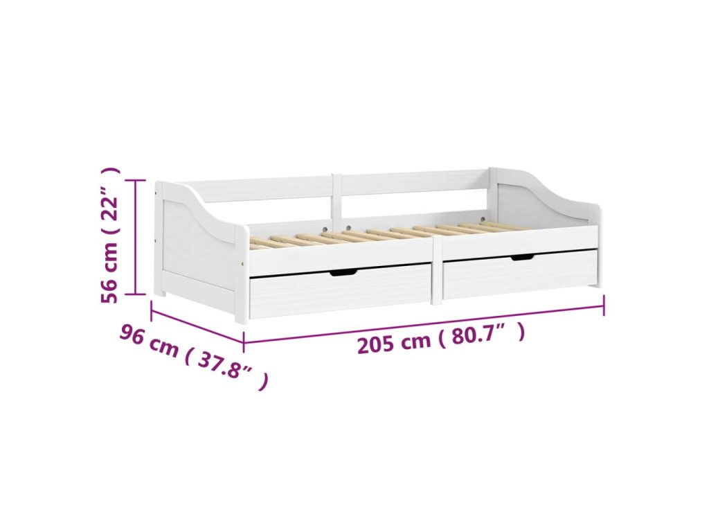 Válenda se 2 zásuvkami IRUN bílá 90x200 cm masivní borové dřevo 3185210