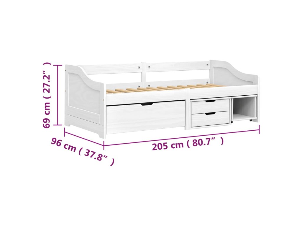 Válenda se 3 zásuvkami IRUN bílá 90x200 cm masivní borové dřevo 3185214