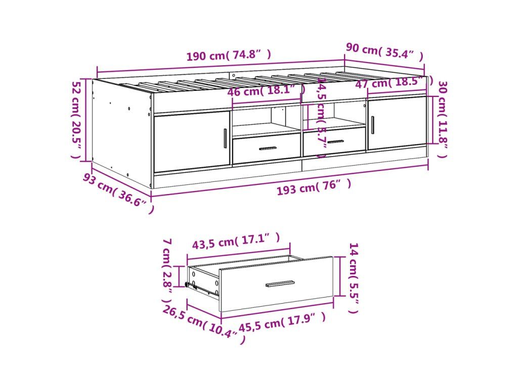 Válenda se zásuvkami bez matrace dub sonoma 90 x 190 cm 3280256