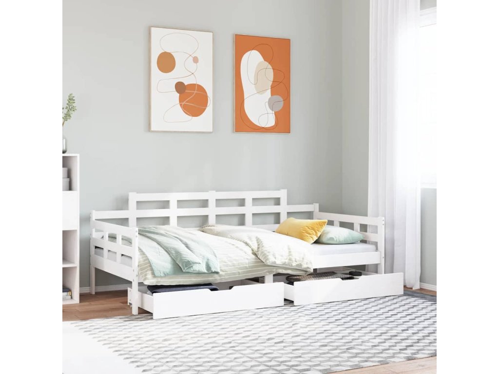 Válenda se zásuvkami bílá 90 x 200 cm masivní borovice 3302121