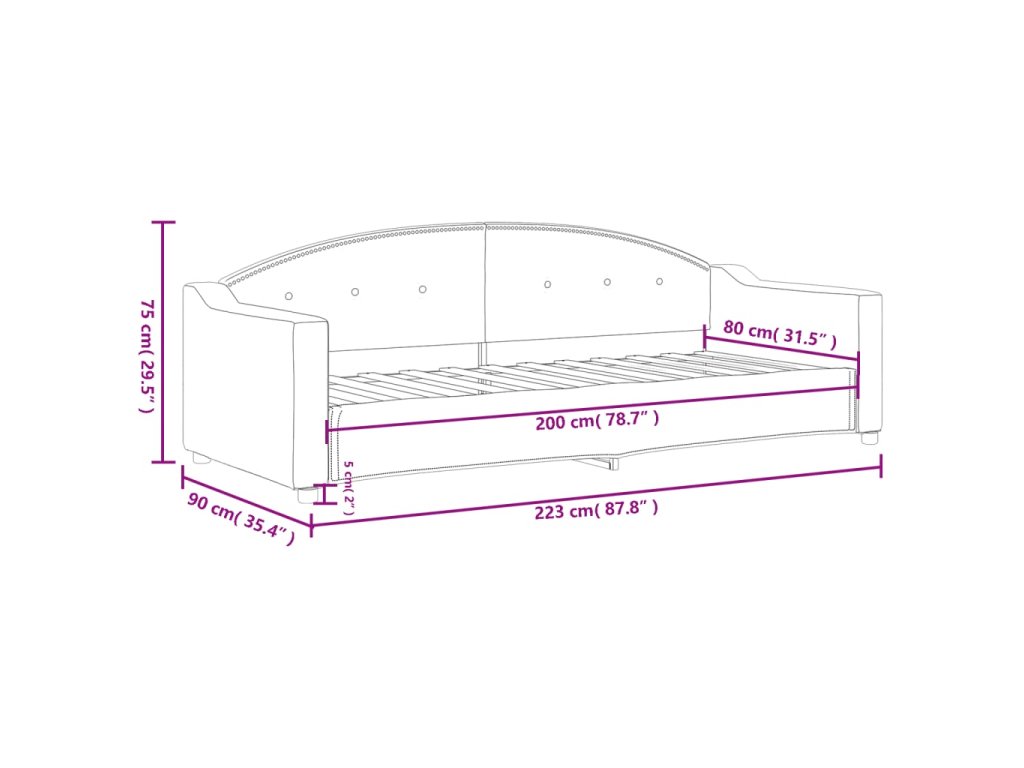 - Rozměry sedáku: 80 x 200 cm (Š x D)