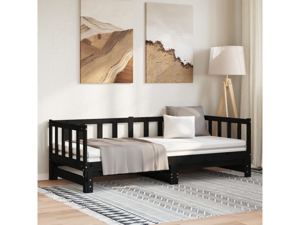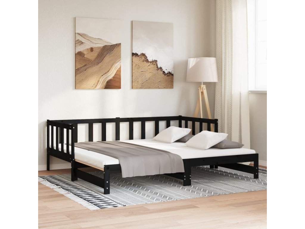 Výsuvná postel černá 2x (90 x 190) cm masivní borovice 814668