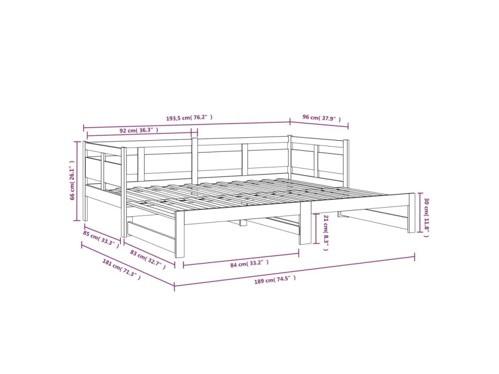 - Rozkládací design: Dřevěná válenda funguje také jako výsuvná postel, lze ji tedy snadno přeměňovat ve dne na pohovku a v noci na pohodlnou postel.